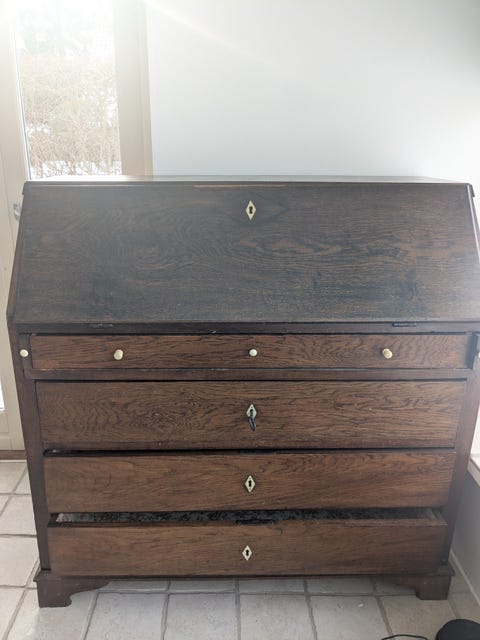 Et nyt møbel, der har en ny funktion. En unik løsning, der samtidig er praktisk, for en del af skufferne i chatollet bliver bevaret.