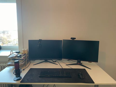 Et skrivebord/arbejdsbord er UUNDVÆRLIGT, når man godt kan lide at makke med fluebinding og andre nørderier. Vi byggede skrivebordet af en krydsfinérsplade, en billig, enkel og fin løsning - men der findes altså også helt vildt mange fede skriveborde på DBA. Kig her.