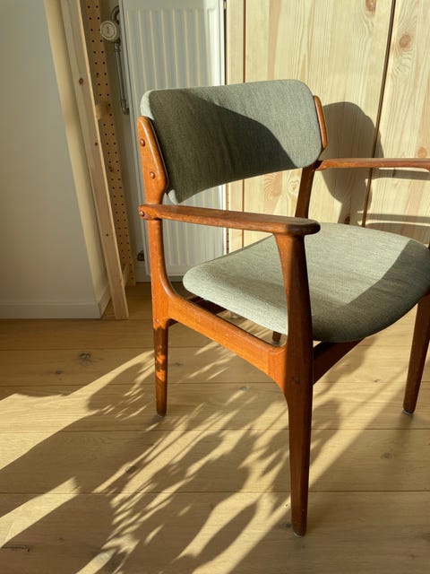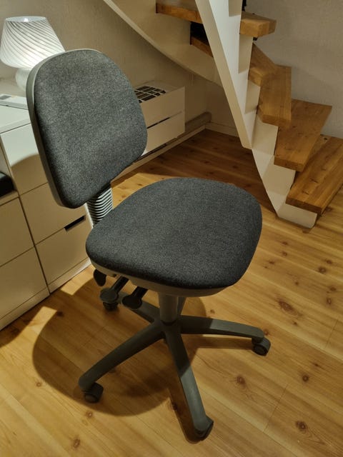 I videoen ovenfor viser jeg, hvordan jeg har mixet min ødelagte Arne Jacobsen-stol til en funktionel kontorstol ved at finde en gammel kontorstol i storskrald.