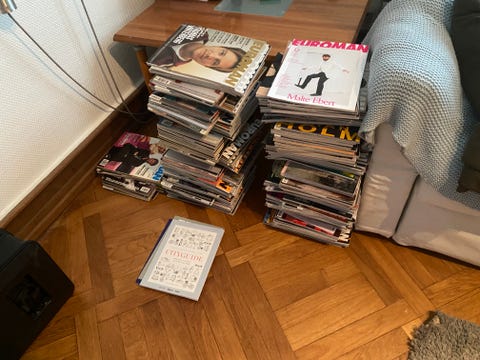 Jeg fandt en masse billige magasiner på DBA og byggede en kasse, hvorpå de kunne limes fast.