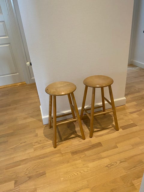 Mine barstole er fra Trævarefabrikkernes udsalg, som jeg ofte falder over på DBA. De har stået helt rå i mit køkken i over et år, så de var ret smadrede at se på, hvilket bringer mig direkte til punkt 1 på min liste
