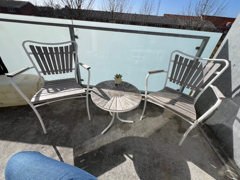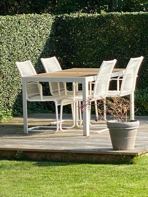8. Sæt bordpladen på stellet, og så er det klar til et koldt glas vin på terrassen.