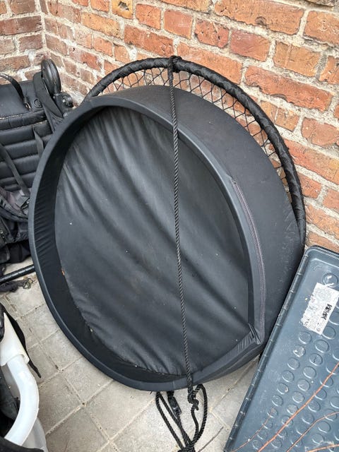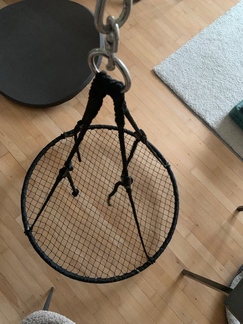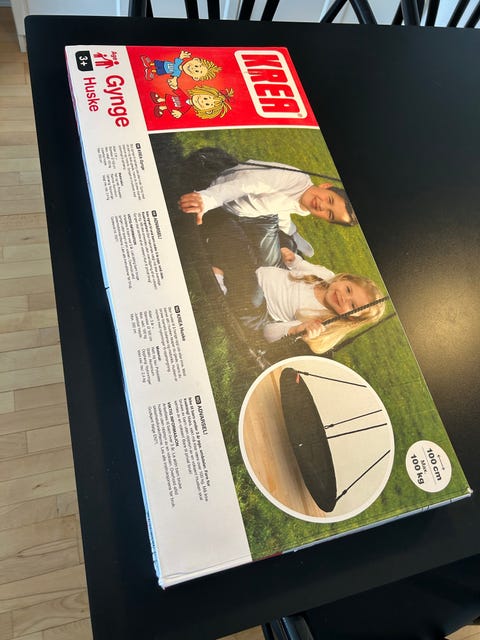 Desuden fandt vi en sansegynge. Det er også et hit hos de fleste unger. I alle aldre, faktisk. Det er super godt for de små’s motorik at blive gynget i sådan en. Vi fandt gyngen til 350 kroner, og det var inklusiv den finde pude.