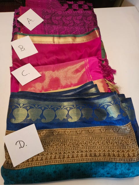 Derfor opfordrer hun til, at man beder sælgeren om at tage billeder af garnet i dagslys – måske endda udenfor, så man kan se den rigtige farve. Hvis hun har købt en pose med fem forskellige garnnøgler, udvælger hun oftest dem, hun kan lide, og så sælger hun de andre videre.
