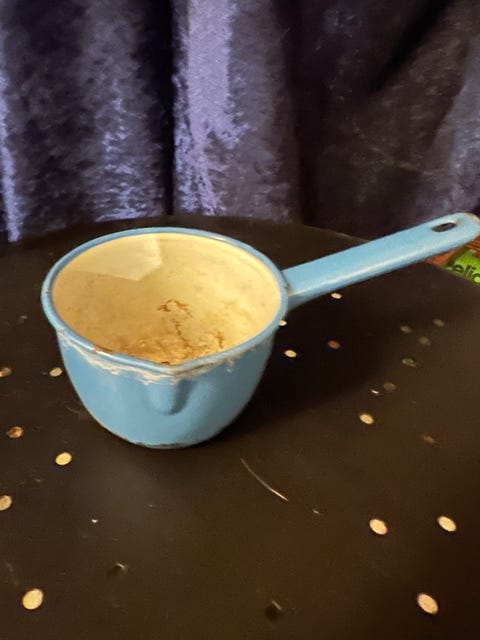 Du ville nok ikke ved første øjekast tænke at bruge en gammel randform til årets adventskrans, men den er praktisk, hvis du som her gerne vil bruge planter, der kræver at blive vandet. Så hvis din mormor ikke ligger inde med én, kan du gå ind og søge direkte på bageforme på DBA – her er der masse af Madam Blå. Og hvis du mere er til de andre emalje-farver, kan du også sagtens lave din advents krans i dem.