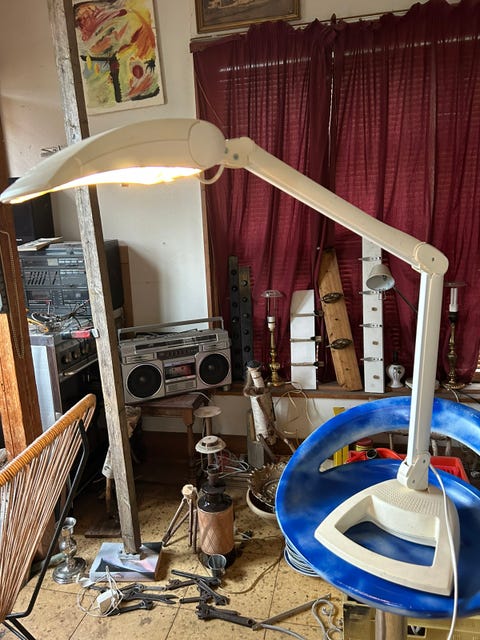 Hvis fatningen på lampen ikke virker, erstatter hun den med en anden, som hun også har købt brugt. I genbrugsbutikker er der nemlig ofte en teknikafdeling, hvor der ligger gamle fatninger og ledninger i kasser.
