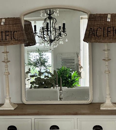 Står du med et rundt spisebord, du skal af med, men mangler du ikke en kontorplads, har jeg også en anden idé til, hvad du kan bruge bordet til: Sæt det op ad væggen i din entre og put et antikt spejl på væggen bagved bordet.