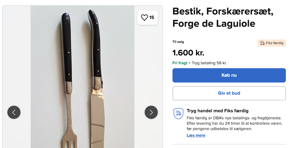 Sælg og køb, som du kender det fra en webshop. Med “Køb nu” kan køberen slå til med det samme til den angivne pris – uden budrunder og ventetid. Sælger aktiverer funktionen, når annoncen oprettes med Fiks færdig. Alt kører automatisk med betaling og fragt, og køberen kan stadig vælge at byde. Nemt og fleksibelt for jer begge.