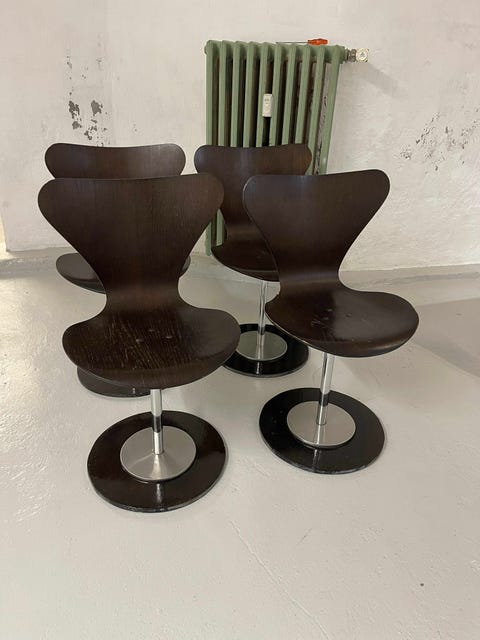 Lige nu kan du finde flere variationer af Arne Jaobsens ’7er-stol’ på DBA.