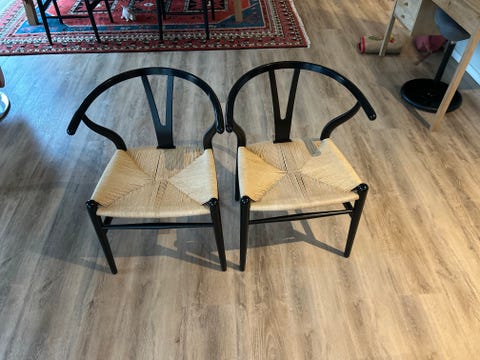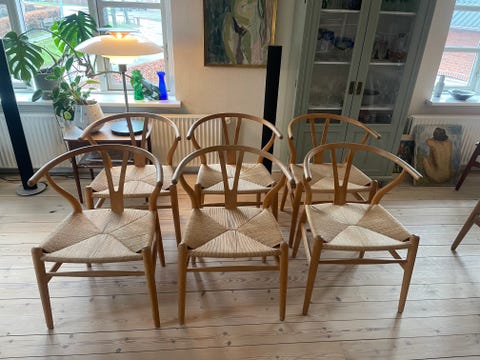 Du kan finde Hans J. Wegners ’Y-stol’ i flere farver og træsorter på DBA lige nu .