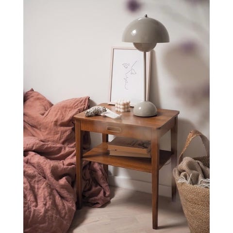 For hende minder det om barndommen, pakket ind i mørke møbler og kradsende sofaer. Det jeg ser, er et stilrent, smukt skandinavisk design, lavet i kvalitetstømmer der stammer fra en hel anden verdensdel end den jeg befinder mig i. Teaktræ er hårdfør, smukt og tungt som ind i helvede – men for mig skriger det design. Jeg tror måske at teaktræ er lidt lige som opera eller klassisk musik – enten elsker man det, eller også hader man det.