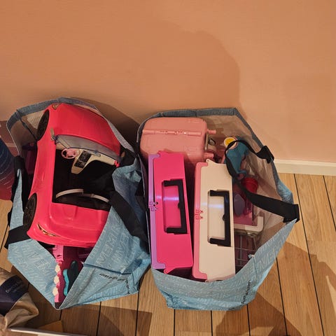 Jeg har altid haft mange Barbie-dukker, fordi det nærmest var det eneste, jeg legede med. I min kælder er der fyldt med dukkerne, accessoires til hende, hendes møbler, Barbie-biler og -hus. Legetøjet er forbundet med så meget nostalgi, men det fylder, og jeg er klar til at gå af med det