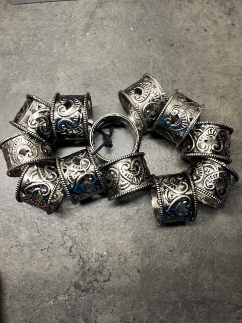 Jeg har ingen regler, leder ikke efter noget bestemt når jeg går på rov i diverse små genbrugsforretninger. Eneste undtagelse er, at de helst ikke skal være ens.