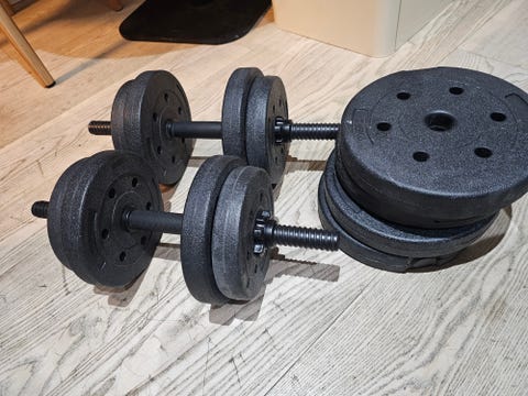 359 håndvægte er lige nu til salg på DBA, og husk at du også kan købe løbeuret, boksebolden og crosstraineren brugt blandt andet.