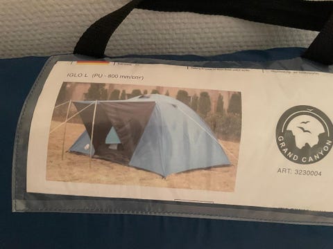 Teltet her står i Tilst. Det er Michael, der sælger det. Han ønsker at få 1.500 kroner for det.