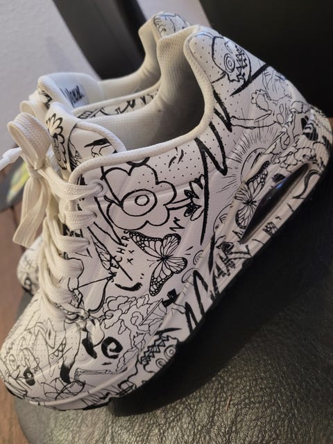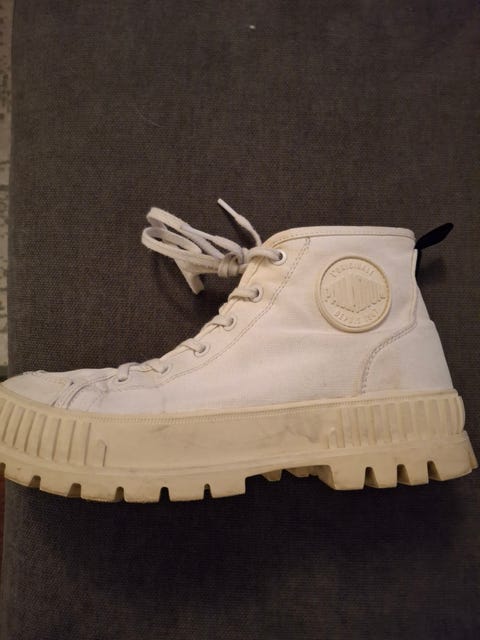 Han har for nyligt købt et par hvide Buffalo-sko på DBA. Et af hans rigtig gode køb, fortæller han: