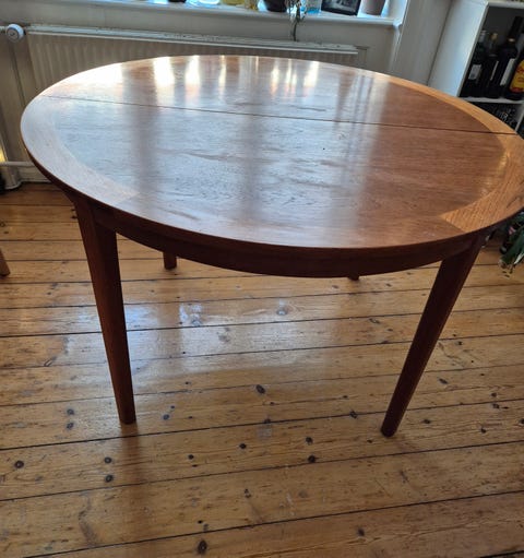 Det er især Laura, der går op i at finde brugte ting til hjemmet, og hun har også svært ved at udvælge sine yndlingsfund. Ét af hendes favoritter er parrets runde teaktræsbord, som kun har et enkelt bordben i midten.