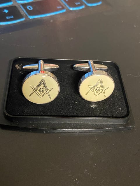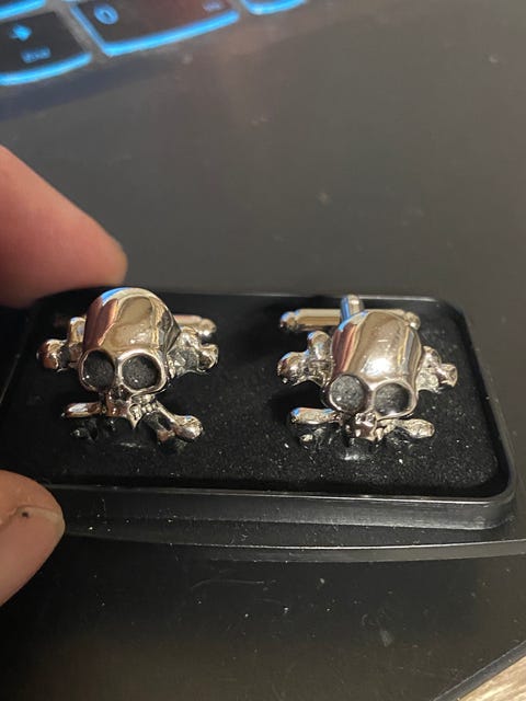 Nå. For år tilbage fandt jeg et par manchetknapper på DBA – de lignede ingenlunde noget, jeg tidligere havde set, og teksten lød, at det måske var vintage. De var absolut billige, så jeg slog til, og selvom de vist ikke har mange år på bagen, så er de blevet luftet et par gange siden. Fidusen med manchetknapper er, at en almindelig, hvid ”mellemlederskjorte” bliver langt mere levende at se på.