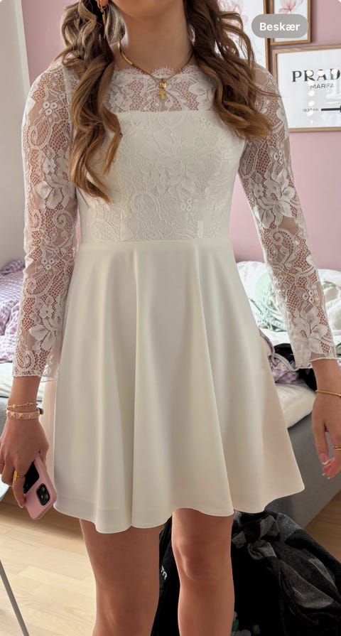 LÆS OGSÅ: Tips til at finde den perfekte brudekjole på DBA Kjolen koster 4.000 kroner på DBA, og udover sparer du 4.000 kroner mod de 8.000 kroner, kjolen kostede fra ny. Og dertil får du en helt speciel følelse med, hvis du køber den.