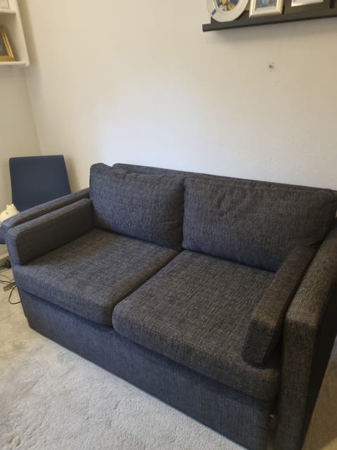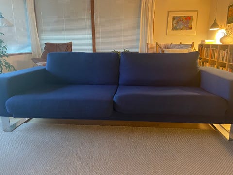 - Det var en ægte, gammel divan, virkelig sej og smuk. Jeg syede selv nye hynder til den, og nu står den i vores sommerhus, og jeg elsker den.
