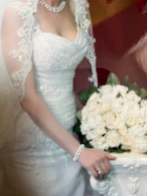 Faktisk så er kjolen og toppen blevet solgt igen på DBA til en brud, som tilfældigvis havde samme højde og kropsmål som mig for 1.200 kroner. Så det er endt med, at jeg i alt har haft en udgift på 2.600 kroner til min brudekjole