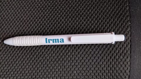 Hvis du tager brillerne på, kan du se den lille røde fyr, der flyder rundt i kuglepennen.
