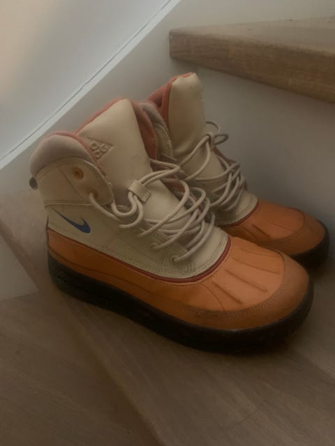 De stinkende dyre sko er af modellen: Nike Waffle Racing Flat ’Moon Shoe’. De er syet i 1972 til amerikanske løbere, der forsøgte at kvalificere sig til De olympiske lege.