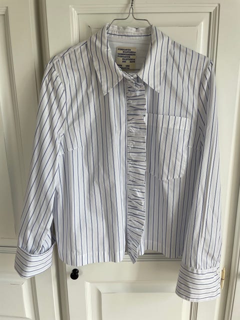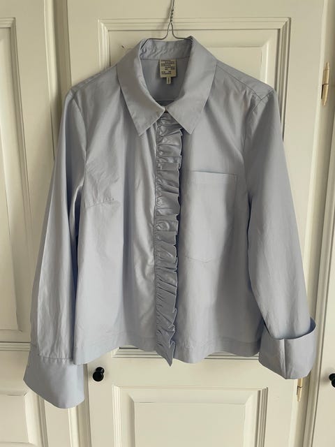 7) Feminine skjorter Detaljerige skjorter er en stensikker vej at gå, hvis du vil være med helt fremme i modebilledet denne sensommer. De sarte nuancer hitter stort og fine flæser, bindebånd og smukke print med blomster eller sommerfugle er dem, du især skal gå efter.