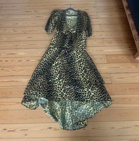 På DBA kan du i skrivende stund finde 338 kjoler fra Ganni. Er du på udkig efter en farverig forårskjole, har Klara fra Køge i øjeblikket nedenstående grønne sag til salg. Kjolen har fra ny kostet 1.300 kroner, men Klara sælger den for blot 550 kroner.