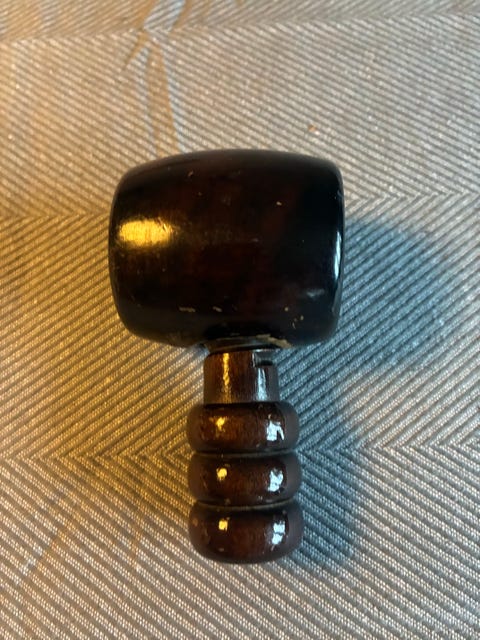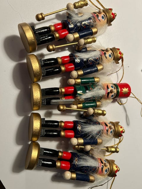 Min nøddeknækkerfigur, som beskrevet ovenfor. Men jeg har netop solgt nogle vintage julelys, som jeg er endt med at tjene gode penge på. Min mand synes, de var grimme, og derfor satte jeg dem til salg. De skulle da funkle og glæde andre, nu hvor de ikke rigtig kom til deres ret hos os.