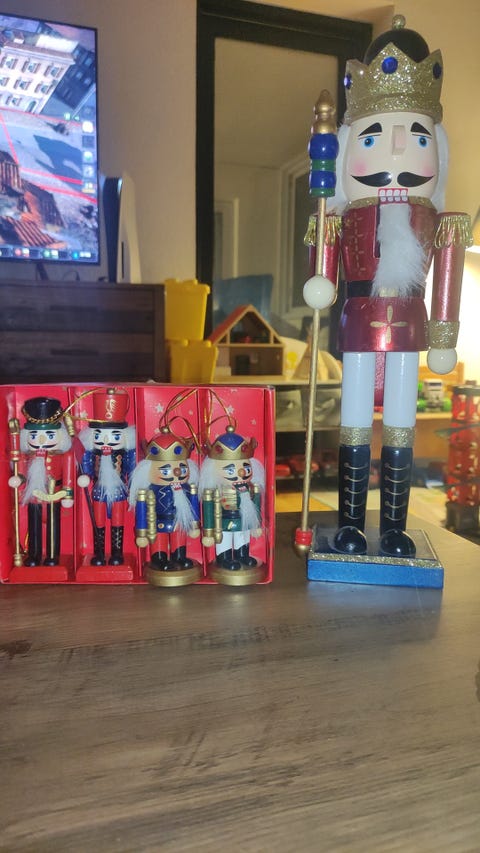 Det er nok mine 2 meget høje nøddeknækker-figurer. Bare den ene af figurerne kostede normalt 4.000 kroner, dengang jeg ville købe ham, men jeg gav kun 1.200 kroner, fordi jeg købte ham brugt. I dag koster sådan en figur omkring 10.000 kroner, hvis du skal købe ham fra ny.