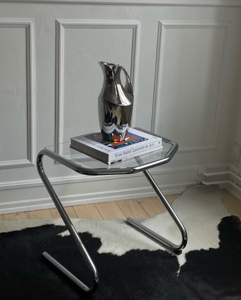 Glasbordpladen, der svævede på stålbene. Ja, sammen med CD-tårnet var det et must i enhver hip bolig i slut 90’erne.