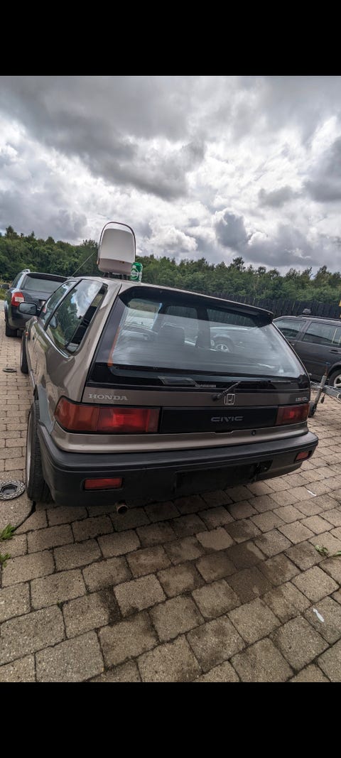 Vognen er til salg på DBA til en pris på 30.000 kroner. Herunder kan du læse mere om, hvorfor bilen er endt med at se ud, som den gør. Hvad den har været igennem.
