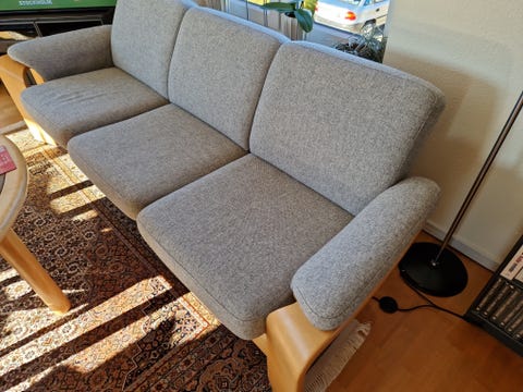 På billedet herunder kan du se en fin sofastol, som ikke ligger skjul på, at den er fra en anden tid, men som faktisk ser ret fed ud. Den pinke/lillae sofa faldt jeg mest over på grund af prisen. 300 kroner!!