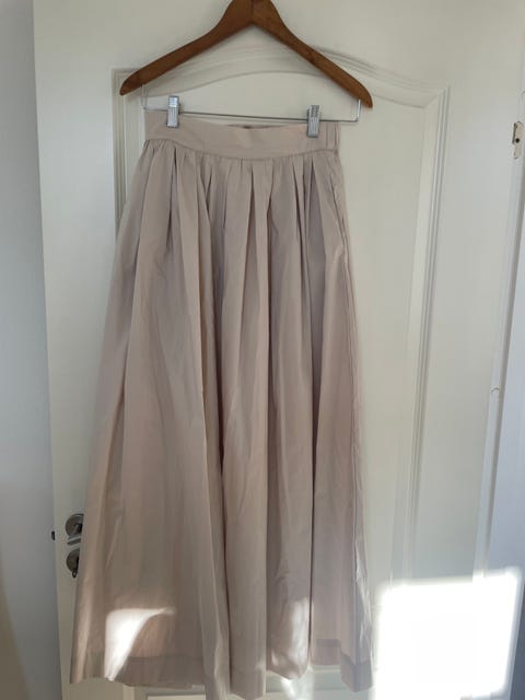 Beta erkender, at hun godt kunne gøre en større indsats for at få sine ting solgt. Og blandt andet derfor skulle vi hilse og sige fra Beata, at hun er villig til at gå ned i pris, hvis du er interesseret i hendes fine, mintgrønne nederdel: