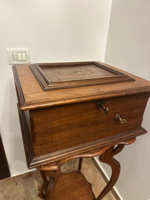 Og pludselig dukkede denne smukke, gamle lirekasse op i 2015. Svend Erik købte den - og fik derigennem også kontakt til andre lirekassefolk. Herfra begyndte parret at opkøbe. En efter en.