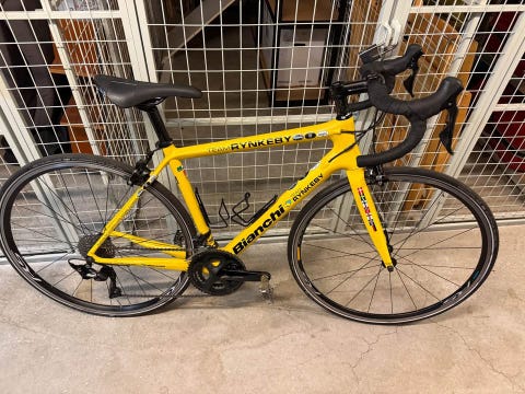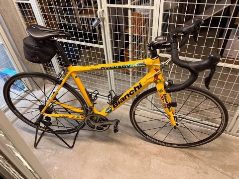Styret er skrigende pink, men det er langt fra det eneste, der udmærker sig ved denne racercykel, som lige nu er til salg på DBA. Den har nemlig kørt DM, mens cykelrytteren Lasse Norman Hansen trådte i dens pedaler. Derudover var det også denne cykel, som Lasse Norman Hansen i sidste sæson vandt bjergtrøjen i Schweiz Rundt på.