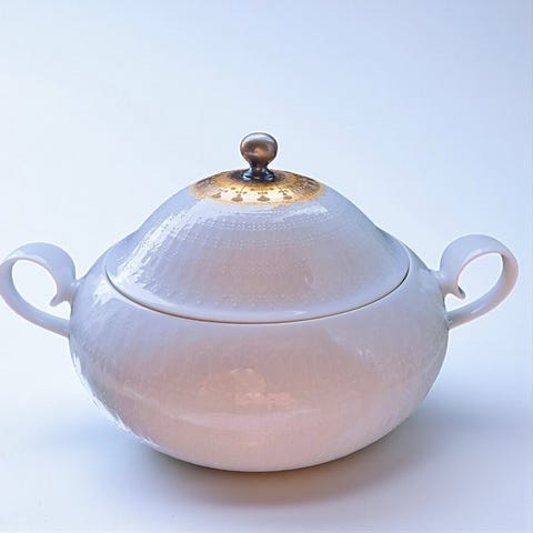 Vi har jo et kolonihavehus, og der kører vi udelukkende Bjørn Wiinblad service. Det er mine svigerforældre, som står for de fleste af de indkøb. De elsker at loppeshoppe, så ofte kommer de lige med den tallerken vi mangler, eller et nyt fad.