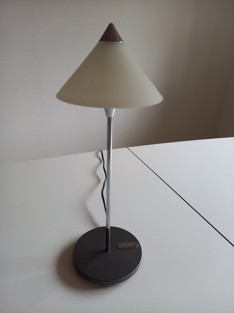 Arkitektlampen giver et lidt råt look til de klassiske teaktræsmøbler.