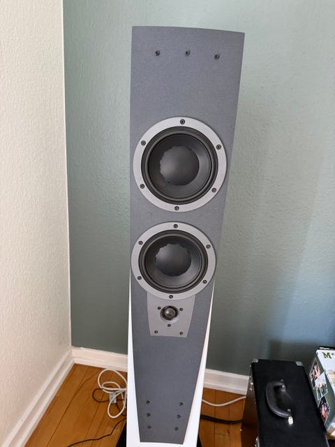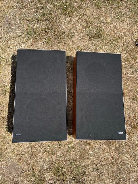 Hvis 58-årige Marks højtalere bliver dine, får du 20 x 13 tommer, fordelt på 4 højtaler-tårne. To af dem er bastårne.
