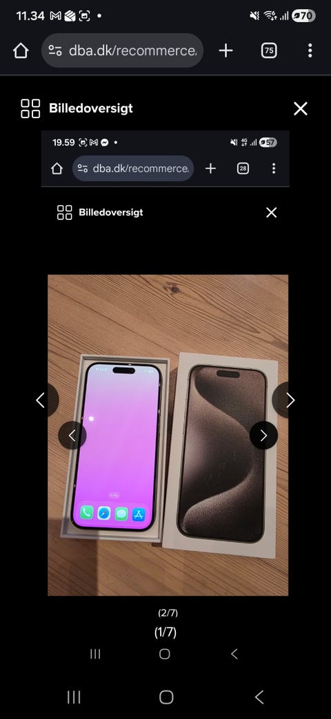 Tag billederne i dagslys. Ikke om aftenen ved kunstigt lys (med mindre du er fotograf). Gå tæt på, så detaljerne kan ses, men tag også oversigtsbilleder. Husk at fotografere siderne, bagsiden og æsken med tilbehøret. Tag desuden et billede, hvor telefonen er tændt, så køberne kan se, at den fungerer.