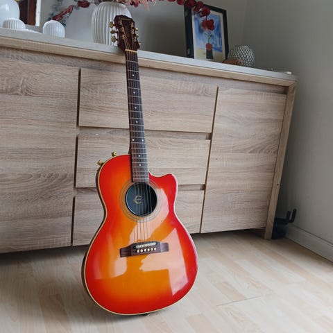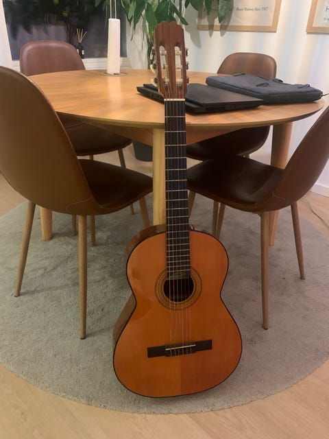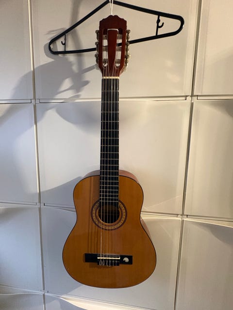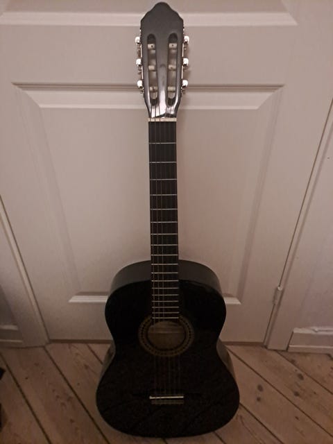 3. Eller prøv med en guitar Hvis du i stedet vil bruge din iPad til at lære at spille guitar, er det også en mulighed. Du kan for eksempel købe en billig, brugt, akustisk guitar med stålstrenge (også kaldet en Westernguitar). Du skal nok forberede dig på at give omkring 1.000 kroner eller mere for den, for ellers risikerer du at købe noget, der hverken lyder særlig godt eller er nemt at spille på. Lige nu er de 489 Westernguitarer til salg på DBA.