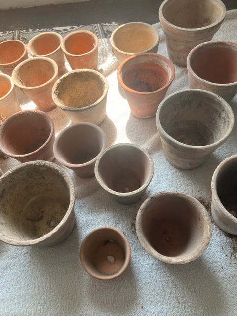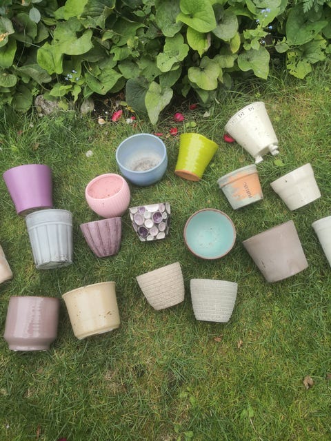 10,-stykket Diverse urtepotter uden hul i bunden i keramik, porcelæn, lerpotter