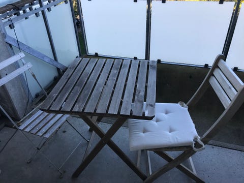 8. Sæt bordpladen på stellet, og så er det klar til et koldt glas vin på terrassen.
