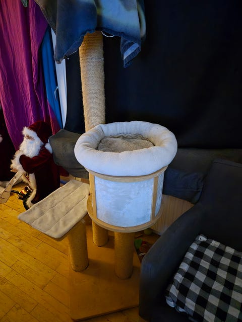 Der er et fint wanna-be hessian beklædning på væggene. Overvejer at male det over med hvidt maling, for at lysne vognen lidt op.. Meeeen – jeg tænker faktisk det helt autentiske vinder over lyse vægge!