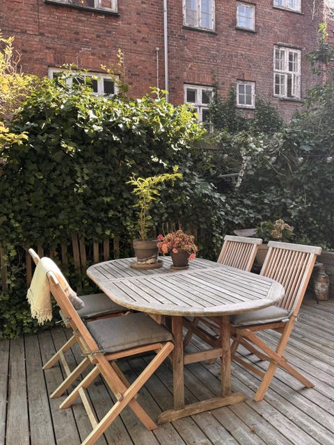 Mine havemøbler er et højt skattet DBA fund for mange siden. Jeg mener jeg gav sølle 500kr for hele sættet og på vej til afhentningen i Ribe faldt jeg endda over et lille loppemarked, hvor jeg fik et retro vattæppe til en 20'er.. win-win