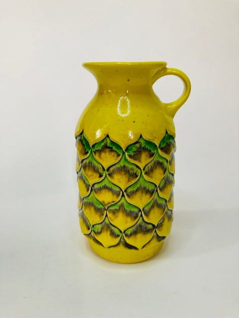 Husk endelig de friske blomster fra harven - gerne i en farverig retro vase. Her er desuden også vist et af mine skøre salt/pebersæt, som også pynter godt på bordet.