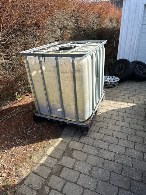 En palletank er et smart stykke udstyr, hvis du vil opsamle regnvand til havens bede.