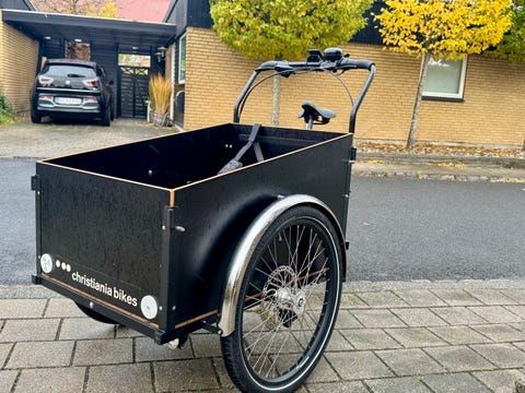 Christiania-cyklen er nok den, de fleste forbinder med en ladcykel. Det er den absolutte klassiker. På en Christiania-cykel sidder styret direkte på kassen, så det kræver lige lidt tilvænning at cykle med sådan en, frem for på en normal cykel. Den kan føles lidt tung i svingene, men det er kun til, du lige har vænnet dig til det.