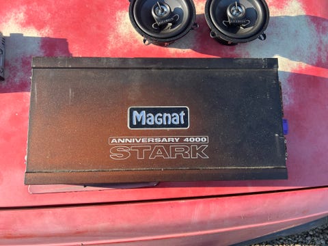 Anlægget har Jimmy primært fra en gammel bil, og det består af et Alpine head-unit med cd og Bluetooth, to diskanter foran, to mellemtoner i midten, en subwoofer bygget ind i reservehjul, en diskant, der driver bassen og en pioneer-forstærker. Lyt til anlægget i videoen.